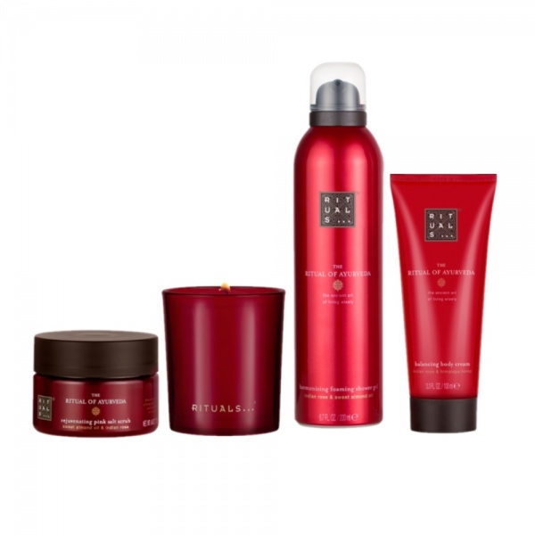Rituals The Ritual of Ayurveda Rebalancing Gift Set – 4 Pieces (This gift set contains: 1x 200ml Foaming Shower Gel 1x 140g Candle 1x 125g Salt Body Scrub 1x 100ml Body Cream)