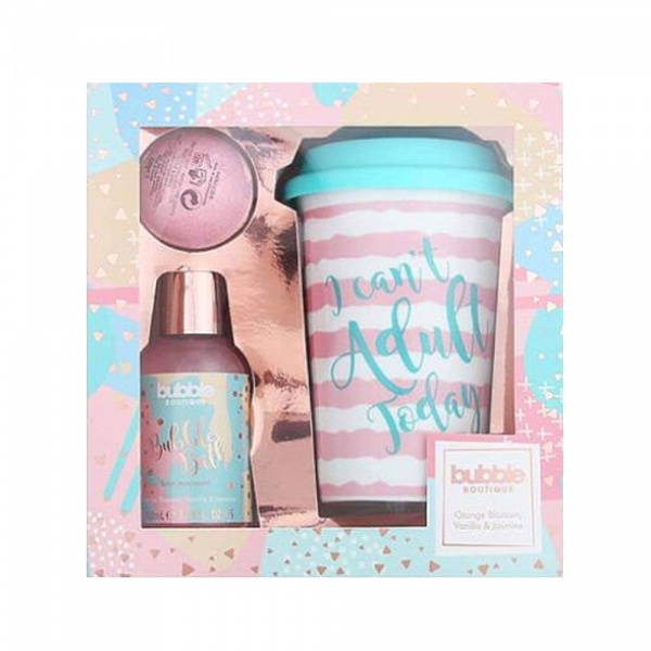 Style & Grace Bubble Boutique Travel Mug Gift Set Eco Packaging 100ml Bubble Bath + 50g Bath Fizzer + Travel Mug