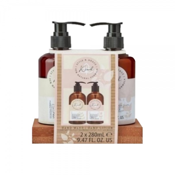 Style & Grace Kind Hand Wash Gift Set 280ml Hand Wash + 280ml Hand Lotion + Pine Tray